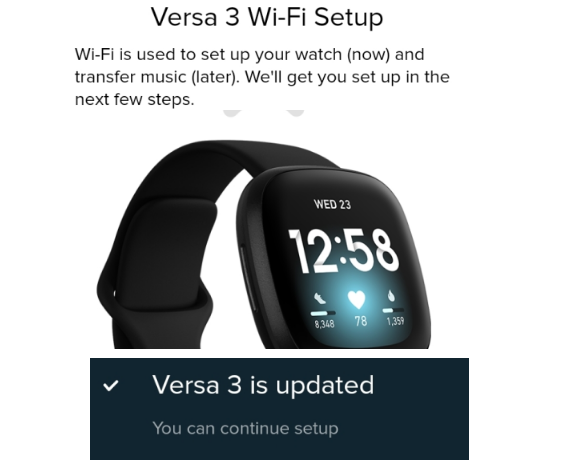 Then you have to charge the device. Attach your charger to the appropriate place on the watch. Then press the forward button. The Fitbit app will search for your Versa 3 device. After finding the device, a code will appear for pairing.